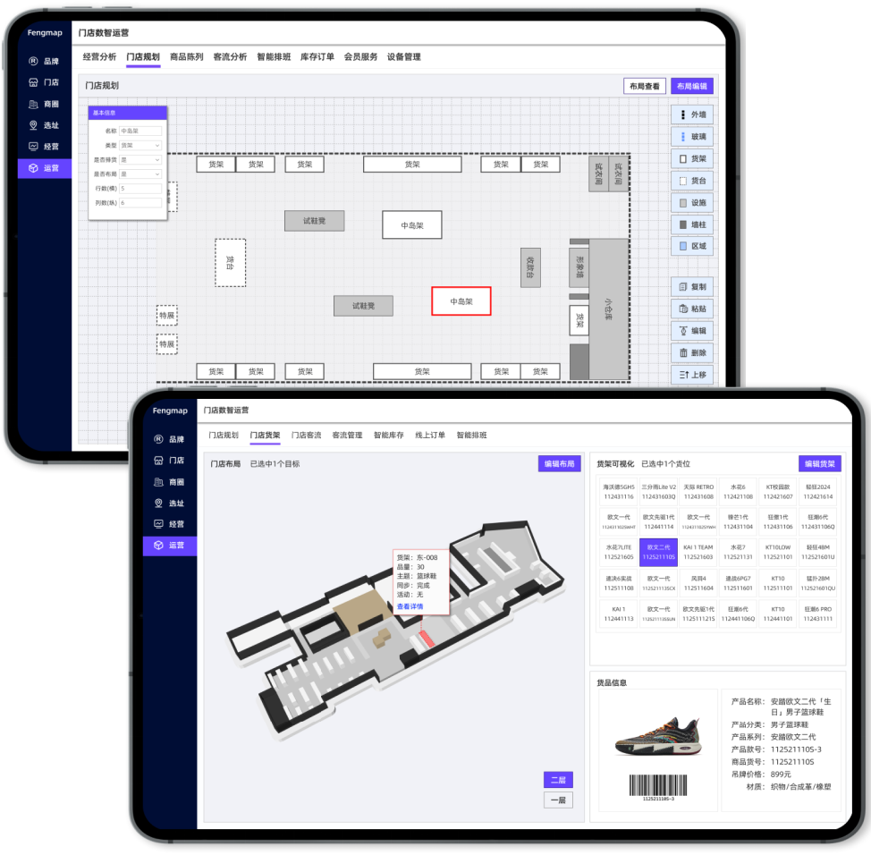 通过布局工具,快速完成线上线下数据一致,为数智门店的货品精准陈设、客流可视化分析、数据分析决策等运营业务场景提供支撑。