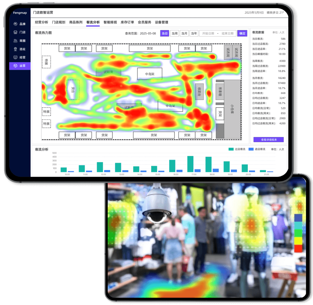 通过AI视觉与I0T设备感知客流动态,实时分析动线停留、热力等数据,辅助优化导购与商品策略。
