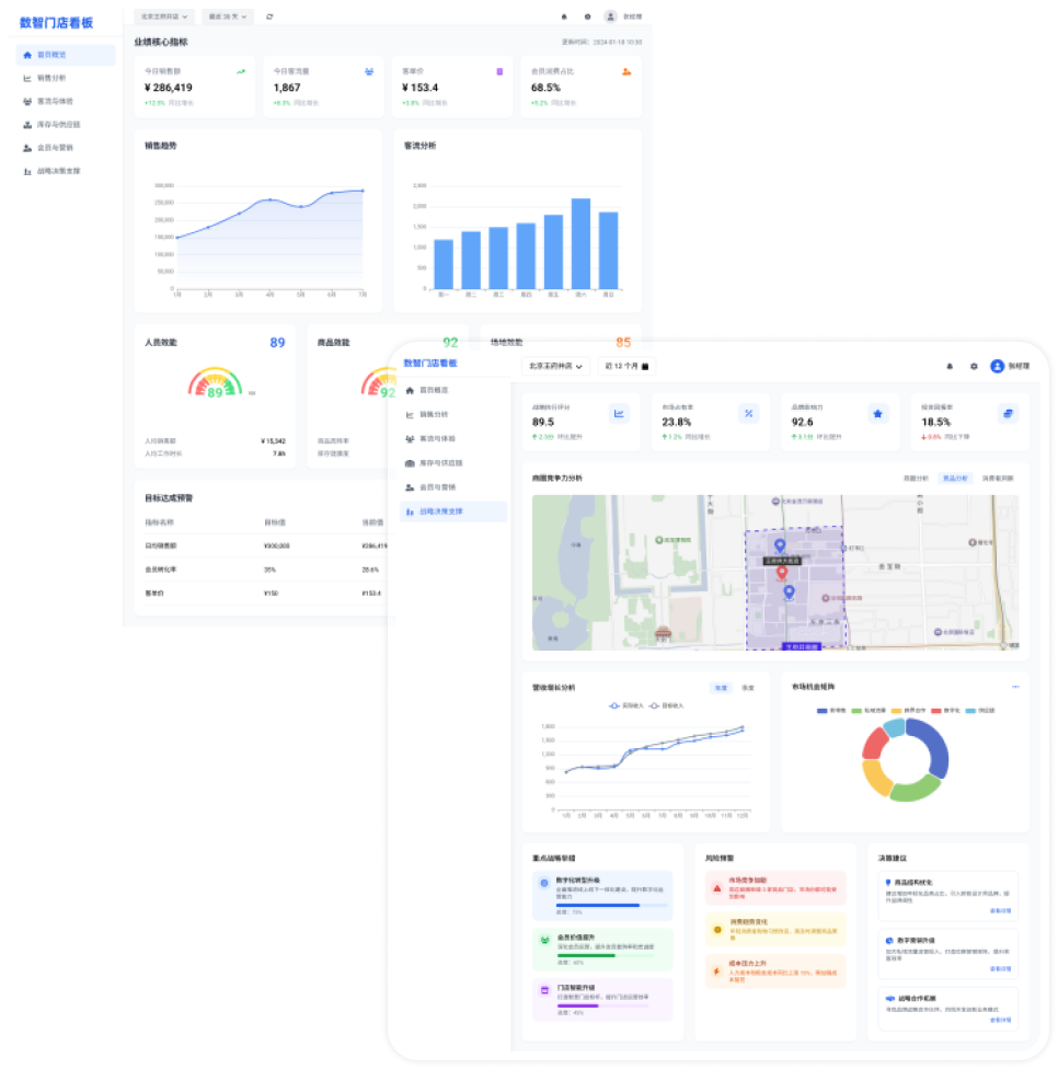 构建门店经营指标视图,支持总部实时掌控经营状态,洞察问题快速反应。