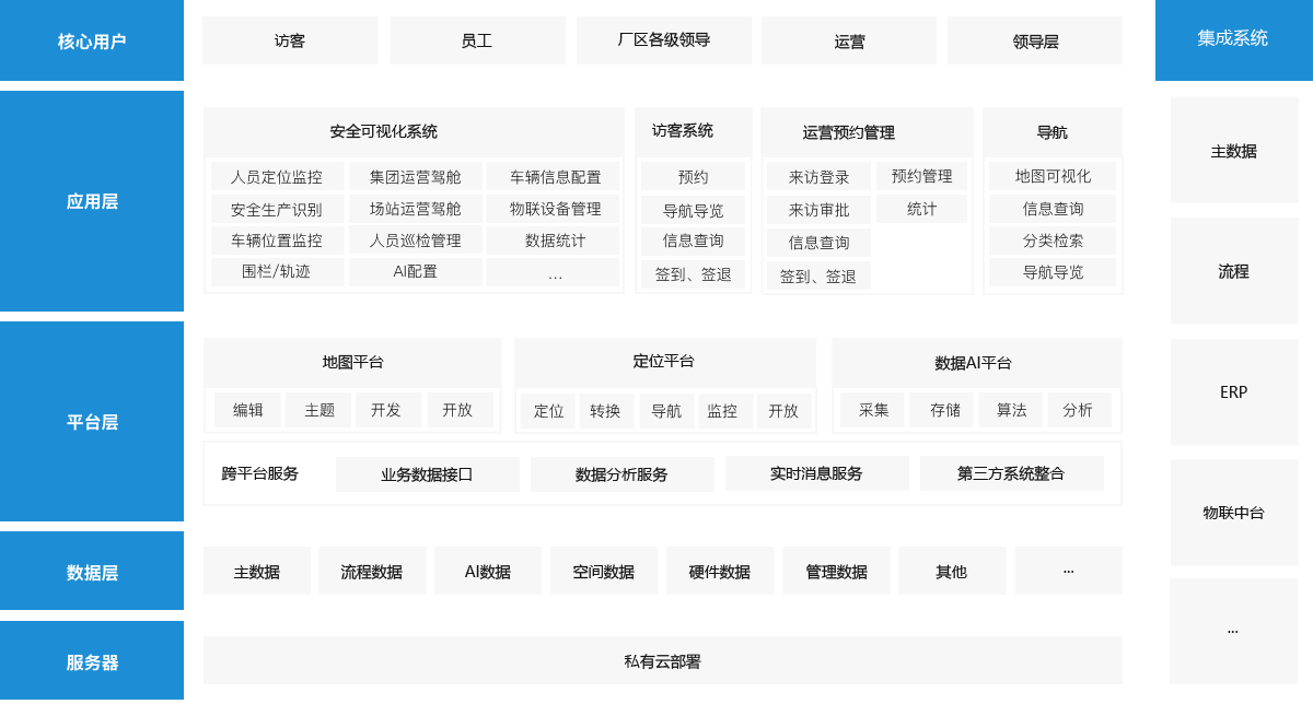 FengMap平台可独立或与其他系统联合部署,支持云端部署、本地化部署。