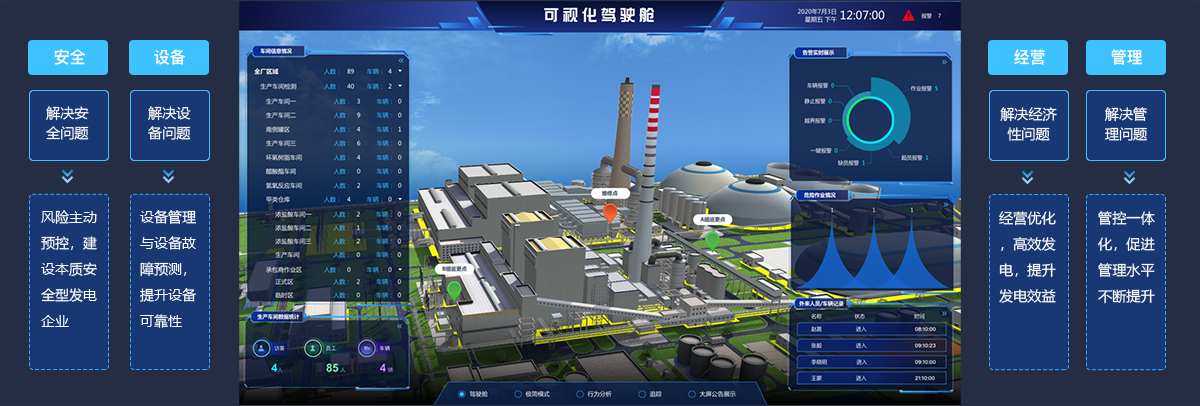 基于三维数字化电厂的可视化场景和数据,对电厂能耗进行计量、监测与管理,集成物联网能耗管理系统,对各类能耗实行精细计量、实时监测、智能处理和动态管控,达到精细化管理的目标。